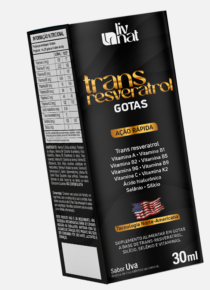 Descrição: O Transreverastrol em gotas da Liv Nat é um potente antioxidante que combate os radicais livres e promove a saúde cardiovascular. Extraído de fontes naturais, este suplemento ajuda a proteger seu corpo e a manter a vitalidade, proporcionando suporte antioxidante e anti-inflamatório.